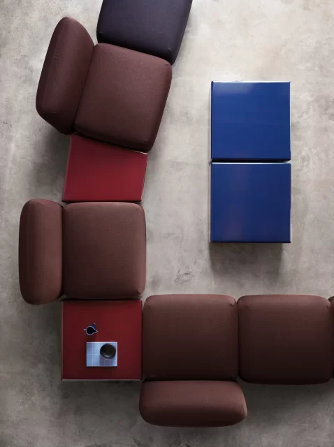これは企画により分割もできるようになっており、そのため天板面におよそ3mmのスリットが入っています 自由度を持たせるために脚の数を多くし、どのような分割具合でも脚の移動で対応できるようになっています。